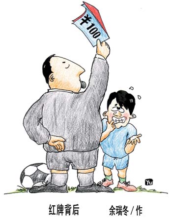 紅牌背后 2002年04月22日 09:54 ![]() 相關報道:體監委確定近期工作重點 抓“黑哨”成為切入點 相關報道:體育總局有關人士:有足協官員涉嫌“黑哨” 相關報道:黑哨龔建平后悔不迭 “我錯過四次寬大機會” 相關報道:黑哨事件納入法律軌道 “中間人”孫培彥被抓 相關報道:收據復寫紙成證據 180萬元假球露出尾巴 相關報道:中國青年報:“3·15”也搞不定假球黑哨 相關報道:合肥晚報:3·15:假球不死的紀念 相關報道:告別假球陰霾 浙江綠城改踢“快樂足球” 相關報道:沒有證據傷及無辜? 閻世鐸駁假球案兩大質疑 相關報道:回溯假球20年黑史 “假B事件”原來事出有源 相關報道:甲B:假球事件背景資料之相關比賽賽況回顧