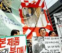 圖文:韓國民間團(tuán)體集會(huì)抗議日本首相靖國參拜 2002年04月22日 16:07 ![]() 韓國在日本戰(zhàn)爭中的受害者,強(qiáng)烈抗議日本首相參拜靖國神社。圖為在漢城韓國警察試圖熄滅抗議者燃燒的日本旗幟。法新圖