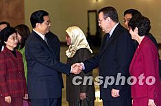 ![]() 中國國家副主席胡錦濤二十三日離開北京,前往馬來西亞、新加坡、美國訪問。國務(wù)院副總理錢其琛等在北京人民大會堂送行。中新社記者 毛建軍 攝