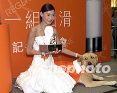 圖:張柏芝與“拍擋”一同出席Regene記者會 2002年04月26日 19:21 ![]() 歌星張柏芝26日在香港出席護膚品牌Regene記者會,張柏芝聯同人見人愛代言動物Healthy和大家見面,并展示Regene為她特制的頭像。中新社傳真 鄧慶樂 攝