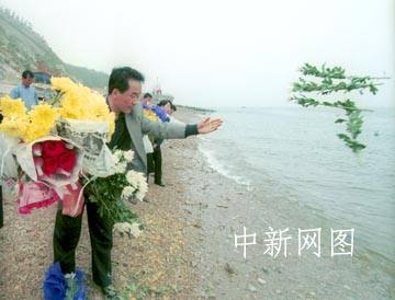 組圖:5月13日大連空難遇難者家屬舉行海祭 2002年05月13日 20:28 ![]() ![]() 圖為張豐儀的母親姜曉云悲痛難抑,暈倒在海邊。 ![]() 張廷家生前是東北電業管理局第二工程公司的工程師,圖為他的同事在大連海濱撒花祭奠 大連海事大學附屬小學五年級學生張豐儀和爸爸張廷家均在“五·七”空難中不幸罹難。五月十三日,張豐儀的母親姜曉云等親屬到飛機失事海域為他們舉行海祭。中新社圖 王麗南 攝