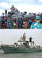 由“青島”號導彈驅逐艦和“太倉”號綜合補給艦組成的中國海軍艦艇編隊,5月15日上午從青島軍港啟程,首次進行環球航行。張全躍 攝