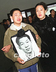 圖:“永別了,親人”--愛子手捧父親的遺像參加追悼會 2002年05月16日 19:40 ![]() 十六日,“五·七”遇難者首批遺體在大連殯儀館火化并舉行追悼會,交通部水運規劃設計院工程師毛鎧的愛子,手捧父親的遺像悲傷不已。逝者三十八歲,曾參加廣東大亞灣、海南天然氣碼頭、大連三十萬噸碼頭等多項國家重點工程規劃設計。作者:王麗南
