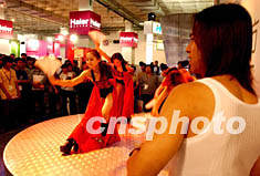圖:猛男靚女為國產家電助威 2002年05月24日 14:57 ![]() 一隊猛男靚女在五月北京國際科技產業博覽會上載歌載舞,為國產家電進軍世界市場助威。賈國榮 攝