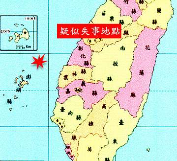 圖:臺(tái)灣墜海客機(jī)墜海地點(diǎn)示意圖 2002年05月25日 19:06 ![]() (中時(shí)電子報(bào)圖) 鄭重聲明:關(guān)于臺(tái)灣華航飛機(jī)失事的新聞信息,系中新網(wǎng)特稿,未經(jīng)書(shū)面授權(quán),不得采用。