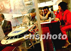 俄羅斯的一艘新型飛翼船在北京五月國際科技產(chǎn)業(yè)博覽會上展示,尋求與中國廣闊的水運(yùn)交通業(yè)進(jìn)行合作,加強(qiáng)現(xiàn)代航運(yùn)實(shí)力。賈國榮 攝