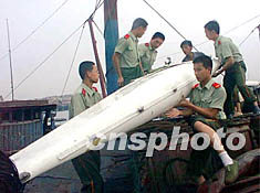 圖:泉州漁民撈獲大型飛機殘骸 2002年06月01日 20:15 ![]() 31日下午4時許,泉州石獅市“閩獅漁2292號”漁船將打撈到的一塊華航客機殘骸交給祥芝邊防派出所。這塊外表乳白色的飛機殘骸長4.2米,寬1.4米,約重一百斤,呈三角形狀。這塊殘骸是5月29日下午4時許,漁船在東經119度39分、北緯24度28分海域生產作業時撿獲的。作者:徐承彬