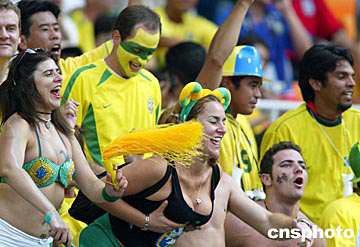 圖:巴西球迷熱情如火 2002年06月27日 16:56 ![]() 世界杯足球賽四分之一決賽巴西隊與英格蘭隊的比賽,二十一日在日本靜岡舉行,結(jié)果巴西以二比一獲勝而進(jìn)入四強。熱情似火的巴西球迷在看臺上吶喊助威。作者:毛建軍