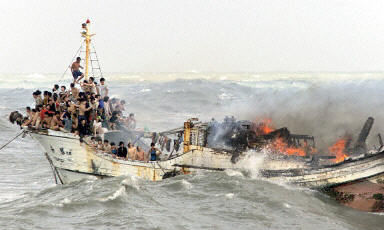 大陸船屋在高雄港起火獲救 海協(xié)就此事發(fā)表談話 2002年07月09日 18:31 ![]() 受困漁工聚在船首待救。(法新圖) ![]() 漁工被直升機凌空吊起,脫離火海。(臺灣聯(lián)合晚報圖) ![]() 獲救的漁工驚魂甫定。(臺灣聯(lián)合晚報圖) 中新網(wǎng)北京7月9日消息:海峽兩岸關系協(xié)會有關人士今天就一艘滿載大陸漁工的船屋在高雄港起火,人員大部獲救一事發(fā)表談話。 他說,7月9日上午8:30,搭載133名大陸漁工的臺灣屏東縣籍海上船屋“元勝”號,因浪大導致機艙進水,電線走火,在高雄附近海上起火。高雄港務消防局、臺灣“海巡署”等臺有關單位派出直升機、救生艇等全力搶救。海峽兩岸關系協(xié)會上午10時得知消息后,立即與臺灣的“兩岸人民服務中心”聯(lián)系,請該會轉請臺灣有關方面協(xié)助全力搶救。中國紅十字會、交通部海上搜救中心也分別與臺灣紅十字組織、臺北中華搜救協(xié)會緊急聯(lián)系,了解情況。至中午12時,“船屋”上132人獲救,其中5人輕傷送醫(yī)院治療。起火具體原因尚在調查中。 這位人士表示,大陸有關方面對遇險漁工的境況十分關心,海協(xié)已致函“兩岸人民服務中心”,向臺灣有關方面及參與救助的全體人員表達誠摯的謝意。 海協(xié)請“中心”轉請臺灣有關方面妥善安置獲救漁工,繼續(xù)搜尋失蹤人員;并希望臺灣方面改變不合理做法,確保大陸漁工應有的合理待遇和人身安全,防止類似事件再度發(fā)生。(完) 大陸漁工船失火:133人獲救2人重傷1人失蹤 中新網(wǎng)香港7月9日消息:臺北訊,作為祖國大陸漁工“海上旅館”用的臺灣屏東籍“元勝二號”漁工船,今天在高雄海域發(fā)生火災。據(jù)臺灣媒體最新消息,事故中目前共計救起133名大陸漁工,其中11人受傷送醫(yī),另有一人失蹤。 據(jù)“中央社”報道,“元勝二號”漁工船今天上午在高雄大林蒲外海發(fā)生火警,造成祖國大陸漁工兩人重傷、九人輕傷送醫(yī)。 受傷的11名大陸漁工中,有10人被送往高雄市的小港醫(yī)院急救。其各自的傷勢情況如下—— 蕭輝,25歲,右手挫傷;陳如君,27歲,左手撕裂傷及頸部扭傷;陳良紅,28歲,頭部及右臉頰外傷;沈繼兵,32歲,頭部外傷及背部多處挫傷;顧海兵,23歲,右手臂擦傷及左小腿挫傷;張永,27歲,頭部外傷、多處撕裂傷、左手臂及右手肘挫傷;唐宗林,20歲,嗆傷及顏面灼傷;劉國保,29歲,嗆傷及胸部挫傷;師福君,21歲,嗆傷;李建國,26歲,臉部燒燙傷合并嗆傷。 這10名受傷漁工中,除師福君及李建國重傷外,其余都屬輕傷。其中師福君因在被救過程中落海,吸入大量海水,造成肺部吸入性嗆傷,經(jīng)急救后,傷勢穩(wěn)定,仍住院觀察;而李建國傷勢最為嚴重,但暫時亦無生命危險。 另一名祖國大陸漁工任忠均,22歲,身上多處擦傷,經(jīng)急救已無大礙。 此外,一名失蹤者的身份目前待查。 原停泊在高雄與屏東間外海的“元勝”二號海上船屋,今天上午約8:30時在高雄南星計劃填海造陸區(qū)外海一浬處突然起火。由于風浪太大,救援船只無法靠近。臺灣方面遂派出直升機,以鋼纜吊掛、接駁方式,將船屋上的大陸漁工救至岸上。據(jù)悉,救援行動歷經(jīng)近5個小時。 “元勝”號是臺灣屏東縣籍的祖國大陸漁工海上船屋,停泊高雄與屏東間外海,因臺灣方面不允許祖國大陸漁工上岸,該船屋被專門用于出海作業(yè)漁船雇用的大陸漁工居住。 相關報道: "突然巨浪打來…"大陸獲救漁工回憶海上大火驚魂 相關報道:大陸漁工船起火132人獲救 落水失蹤人數(shù)說法不一 相關報道:圖文:大陸漁工船屋被燒毀 128名漁工全部獲救 相關報道:七位大陸漁工在高雄急救 有人跳海 船屋沉沒一半 相關報道:臺灣船屋失火 救起60余大陸漁工 尚有30多待救 相關報道:搭載大陸漁工的船只在臺灣海峽失火 100多人待救 相關報道:一艘載有100多人的大陸漁船在臺灣海峽著火