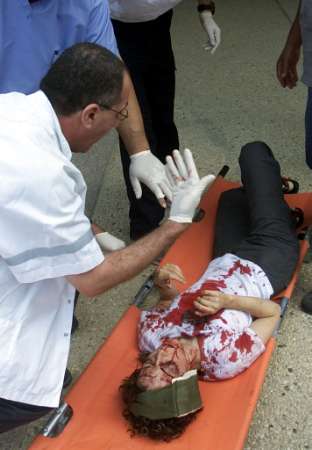 (圖)耶路撒冷希伯來大學(xué)餐廳發(fā)生爆炸致7死85傷 2002年07月31日 19:08 ![]() ![]() ![]() 中新網(wǎng)北京7月31日消息:據(jù)美聯(lián)社報(bào)道,耶路撒冷東部希伯來大學(xué)的一個(gè)餐廳31日午餐時(shí)間發(fā)生爆炸,造成7人死亡,85人受傷,其中14人重傷。 巴勒斯坦激進(jìn)組織伊斯蘭抵抗運(yùn)動(dòng)哈馬斯宣布對(duì)此次爆炸事件負(fù)責(zé),并稱這是對(duì)以色列23日轟炸加沙居民樓進(jìn)行的報(bào)復(fù)。 雖然以色列的各大學(xué)目前均已放假,但發(fā)生爆炸時(shí)仍有許多留校學(xué)生正在咖啡廳用午餐。 事發(fā)后,新華社記者與在該大學(xué)區(qū)讀書的幾名中國留學(xué)生取得了聯(lián)系。據(jù)他們介紹,由于學(xué)校放假,中國學(xué)生均離開了學(xué)校,在爆炸中沒有中國學(xué)生受傷。目前有十幾名中國留學(xué)生在該大學(xué)區(qū)讀書。 死傷的人員中大部分為18-30歲的學(xué)生,其中許多為外國學(xué)生。這是自以巴沖突爆發(fā)以來,在以色列校園內(nèi)發(fā)生的首起爆炸襲擊事件。 巴勒斯坦民族權(quán)利機(jī)構(gòu)事后發(fā)表聲明譴責(zé)爆炸事件。以色列總理沙龍取消了當(dāng)天的所有日程安排,預(yù)計(jì)以色列內(nèi)閣將召開會(huì)議。 美國總統(tǒng)布什強(qiáng)烈譴責(zé)本次襲擊。他呼吁巴勒斯坦民族權(quán)利機(jī)構(gòu)致力制止恐怖主義,并強(qiáng)調(diào)美國不會(huì)放棄推動(dòng)中東實(shí)現(xiàn)和平。 在昨日,巴勒斯坦激進(jìn)份子,在耶路撒冷市中心,發(fā)動(dòng)自殺式襲擊,造成一死七傷。