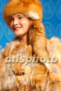 中國著名東北虎皮草集團,日前在哈爾濱舉行2003年“時尚魅力玫瑰之約”新款皮草秀。圖為俄羅斯模特展示新款皮草作品。錢興強 攝