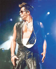 據(jù)東方日報報道,18日于橫濱舉行最后一場的演出,因為得到緋聞女友藤原紀香在第一場演唱會到場打氣后,城城演出加倍落力。他施展渾身解數(shù)勁歌熱舞,還不經(jīng)意拉開上衣拉鏈,露出健碩的胸肌,臺下歌迷尖叫聲此起彼落。期間有五位來自沖繩的癡情歌迷,為了沖上臺向城城獻花時,差點被保安人員推跌,發(fā)生沖突,歌迷更激動得哭了起來,幸得城城在臺上勸止。