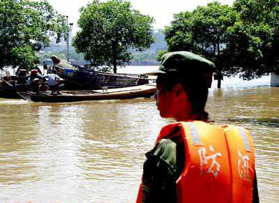 8月11日以來,我省自北向南再次發生新的降雨過程。特別是從8月18日開始,全省普降中到大雨,部分地區降暴雨,主要集中在湘中、湘北及湘西南地區,湘、資、沅、澧四水及洞庭湖水位持續上漲。截止20日14時,湘江長沙站水位37.4米,超警戒水位2.4米,湘江第六次洪峰即將到來。洞庭湖城陵磯水位33.5米,超警戒水位1.5米。目前,三口(松滋、藕池、太平)四水入湖流量45127立方米每秒,出湖流量19300立方米每秒,洞庭湖水位仍將攀升。2O日,岳陽縣楊柳垸、毛家湖垸,湘陰縣湘濱垸,汨羅市屈原垸等處大堤分別出現翻沙和管涌等險情;益陽桃江縣花果山鄉發生管涌群;衡山縣境內發生山洪。邵陽市市區4條主要街道被淹;207國道雙牌段被洪水沖毀,交通中斷,形勢十分危急。湖南省委、省政府宣布全省進入緊急防汛期。為奪取今年抗洪搶險的勝利,省軍區號召: