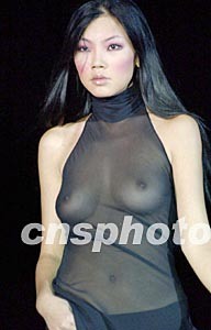 意大利著名服裝名牌“蓋·馬帝洛”,日前首次在北京舉行精品時裝展示會。圖為模特展示迷人的透視女裝。錢興強 攝