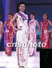 二00二年度紐約華裔小姐選美決賽昨晚在曼哈頓舉行,參賽選手按規定進行了多項表演和才藝展示,當參賽選手著中國旗袍出場時,濃濃的中國韻味令人眼前一亮。作者:龔文謨