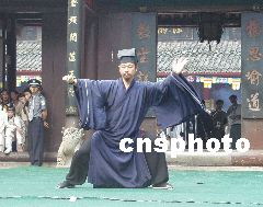 來自武當派的英杰,由原太和宮主持、武當道教文化研究會會長游玄德宗師掌門率隊。武當派高手袁理敏、游小龍、游尊龍、周理參、黃理安等赴賽。著一身道服,頭戴莊子帽的游玄德在臺上將武當秘傳太極拳和神秘的內家功夫實戰演藝首次公開亮相,幾個招式,便贏得滿場喝彩。武當派內家祖庭十五代弟子游小龍的武當醉八仙劍,演示得似醉非醉、云里霧里、劍法凌厲多變。