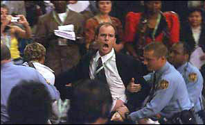 英國廣播公司的消息說,鮑威爾批評津巴布韋和提到美國如何應(yīng)付環(huán)境變化的時候,遭與會者嘲笑。多次噓聲和“布什可恥”的口號聲使他不得不中斷了當(dāng)天的發(fā)言。