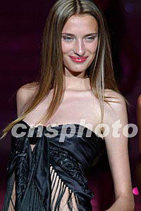 2002世界精英模特大賽總決賽七日晚在北非突尼斯舉行,來自世界各國的模特選手,在突尼斯古老的角斗場進行角逐。圖為模特身穿晚裝展示。
