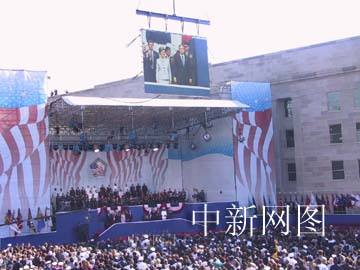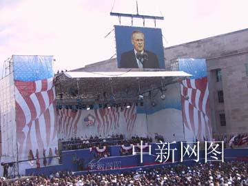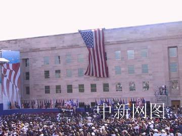 美國政府在國防部五角大樓舉行“九·一一”事件一周年紀念儀式。中新社記者 余東暉 攝