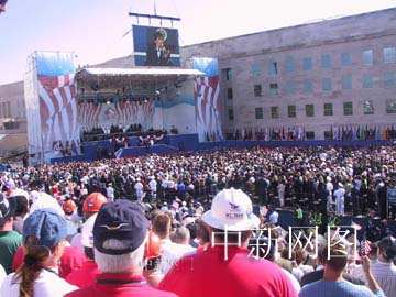 美國政府在國防部五角大樓舉行“九·一一”事件一周年紀念儀式。中新社記者 余東暉 攝