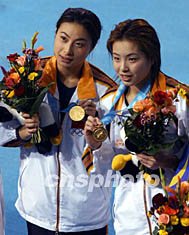 郭晶晶和吳敏霞的成績為319.800分,遠遠高出對手。韓國選手以248.040分獲得銀牌,馬來西亞選手以245.340拿到一枚銅牌。