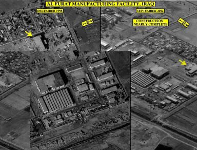 10月8日,美國政府7日公布了兩張衛(wèi)星照片,稱上面顯示了伊拉克 正在重建大規(guī)模殺傷性武器的制造設施。