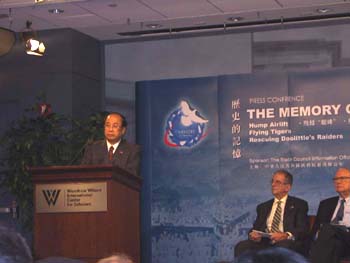 這是今天在此間開幕的大型展覽“歷史的記憶”的重要活動之一。在中美聯合公報發表三十周年,江澤民主席即將訪美之際,中國國務院新聞辦在此間的威爾遜中心舉辦“歷史的記憶”展覽,該展覽分為“駝峰航線”、“陳納德和美國志愿航空隊”、“營救杜利特爾轟炸機隊”三部分,講述“二戰”期間中美在反法西斯戰爭中的合作歷史。