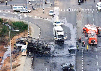 中新網(wǎng)10月22日電 一枚自殺性汽車炸彈21日在以色列北部哈代拉將一輛公共汽車炸毀,造成至少14人喪生,另有47人受傷。