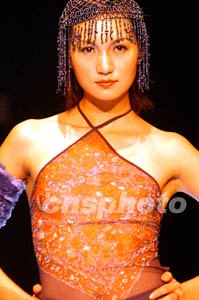 二十一日晚,中國著名服裝企業杉杉集團與著名時裝設計師王新元攜手,在第六屆寧波國際服裝博覽會閉幕式上推出“桑梓才情”高級時裝秀。作者:錢興強