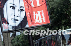 重新制作發行的電影《江姐》的廣告燈箱出現在秋日的北京街頭。該片被列入向中共十六大獻禮的影片之列。作者:滿會喬