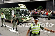 中新網10月30日電 一代巨星羅文29日出殯,儀式在下午1點舉行,數百位羅文生前至親好友,以及在殯儀館門外手持鮮花的歌迷,懷著沉痛而依依不舍的心情,陪伴一代歌圣走完最后一段旅程。