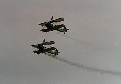 這屆展會(huì),英國UBB空中雜技表演隊(duì)駕駛老式波音-斯蒂曼爾雙翼機(jī)首次作了精彩的空中雜技表演。這屆航展,雖然一直天氣惡劣、雨絲綿綿,但各國空中勇士們?nèi)匀桓?jìng)技藍(lán)天,中國陸軍航空兵也多次冒雨進(jìn)行飛行表演,但為保證絕對(duì)安全,部分表演隊(duì)基本上困守在地面。由于各種航展設(shè)施已進(jìn)一步完善,加上雨天觀眾稀少,所以這屆航展秩序良好。(遠(yuǎn)林)