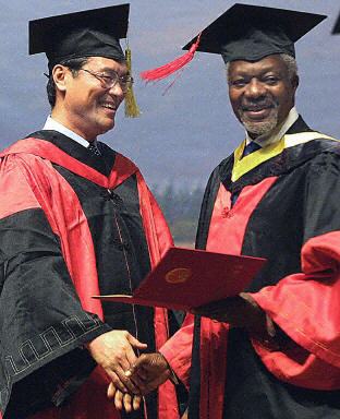 10月14日,訪問杭州的聯合國秘書長安南接受浙江大學授予的榮譽博士學位。
