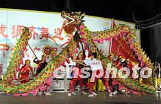 龍獅齊舞慶盛世--喜迎“十六大”廣場民間藝術表演晚會,二日晚在廣州番禺沙灣鎮(zhèn)舉行,該鎮(zhèn)沙坑女子龍隊表演的“艷龍爭輝”,表現(xiàn)了農(nóng)村婦女喜迎十六大的喜悅心情。作者:梁永強