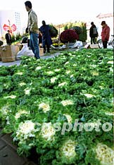 為迎接中共十六大的召開,北京西單廣場十一月布置的花卉雕塑別出新意,部分擺設采用蔬菜為材料,象征綠色生活。作者:俊畫