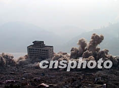 三峽庫區(qū)迄今為止最大規(guī)模爆破,四日上午十時五十分在重慶奉節(jié)實施。這座具有詩城美譽的千年歷史文化名城傾刻間灰飛煙滅,明年三峽庫區(qū)二期蓄水后這里將成為一片汪洋。前來參加爆破實施的中國國務(wù)院三峽建設(shè)委員會副主任、重慶市副市長甘宇平成為了媒體采訪的焦點人物,他表示此次爆破意味著三峽庫區(qū)建筑物爆破工作基本結(jié)束。作者:鄒輝