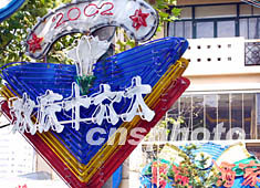 圖:申城街頭喜氣洋洋迎接十六大