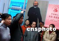 中國首家馬克思展廳十一月當中共十六大召開之時開放,位于北京胡同里創新書園的這個民辦展廳,擠滿了京城的大學生。作者:賈國榮