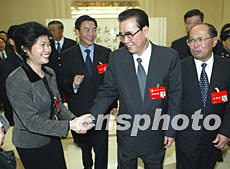 中共中央政治局常委、全國人大常委會委員長李鵬九日參加重慶代表團分組會,與代表一起討論江澤民總書記的報告。作者:毛建軍