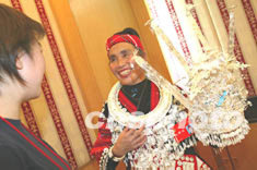 來自貴州的苗族代表張庭真十二日在中共十六大新聞中心接受記者訪問,談少數(shù)民族地區(qū)的生活變化。作者:毛建軍