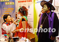 香港卓姬國際美學院,11月13日參加《香港亞太區美容展》向業內人士介紹化妝舞會的化妝技巧。洪少葵 攝