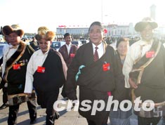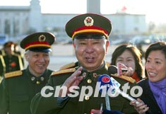 解放軍代表隗福臨步入會場時受到媒體關注。