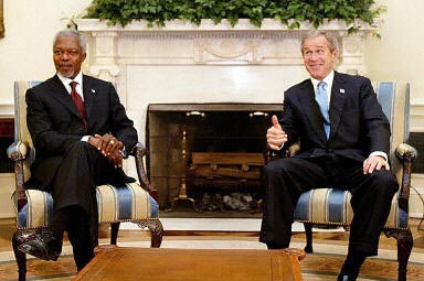 圖:美國總統布什在白宮與聯合國秘書長安南會晤