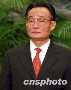 中國共產黨十六屆一中全會十五日上午在北京人民大會堂舉行,胡錦濤、吳邦國、溫家寶、賈慶林、曾慶紅、黃菊、吳官正、李長春、羅干等九人當選為新一屆中共中央政治局常委。圖為新當選的常委吳邦國。作者:毛建軍