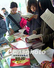北京眾多青年人在書店選購有關公務員知識的書籍,準備參加十二月進行的國家公務員考試。在競爭激烈的現代中國,擁有穩定收入的公務員職位越來越受到年青人的青睞。作者:王麗南