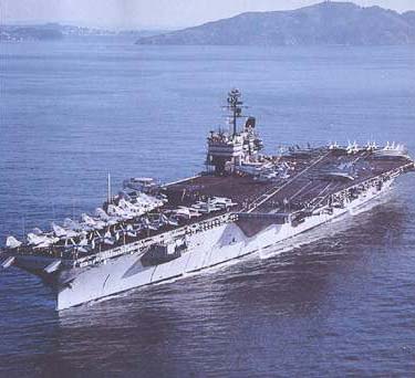該戰(zhàn)斗艦群隊還包括一艘核潛艇﹑一艘護(hù)航艦﹑兩艘驅(qū)逐艦及兩艘補(bǔ)給艦。共有美軍近8000名。其中“星座號”上可載5000名海軍和空軍人員。