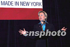 紐約州聯邦參議員希拉里十一月二十二日在曼哈頓參加“我愛紐約時裝”活動以示支持,她說自己身上穿著的衣服就是紐約制造的。作者:趙海燕