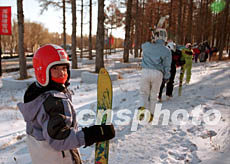 東北城市哈爾濱市的老百姓非常喜愛冬季滑雪運動,很多兒童利用周末前往二龍山滑雪場學習滑雪、享受大自然。作者:張宇
