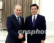 胡錦濤對普京總統的來訪表示熱烈歡迎。他愉快地回憶了去年十月對俄羅斯的工作訪問,表示很高興與普京總統在北京再次見面。