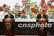 中國國家主席江澤民與俄羅斯總統普京二日在北京人民大會堂舉行會談并出席簽字儀式后,共同會見中外記者。作者:毛建軍